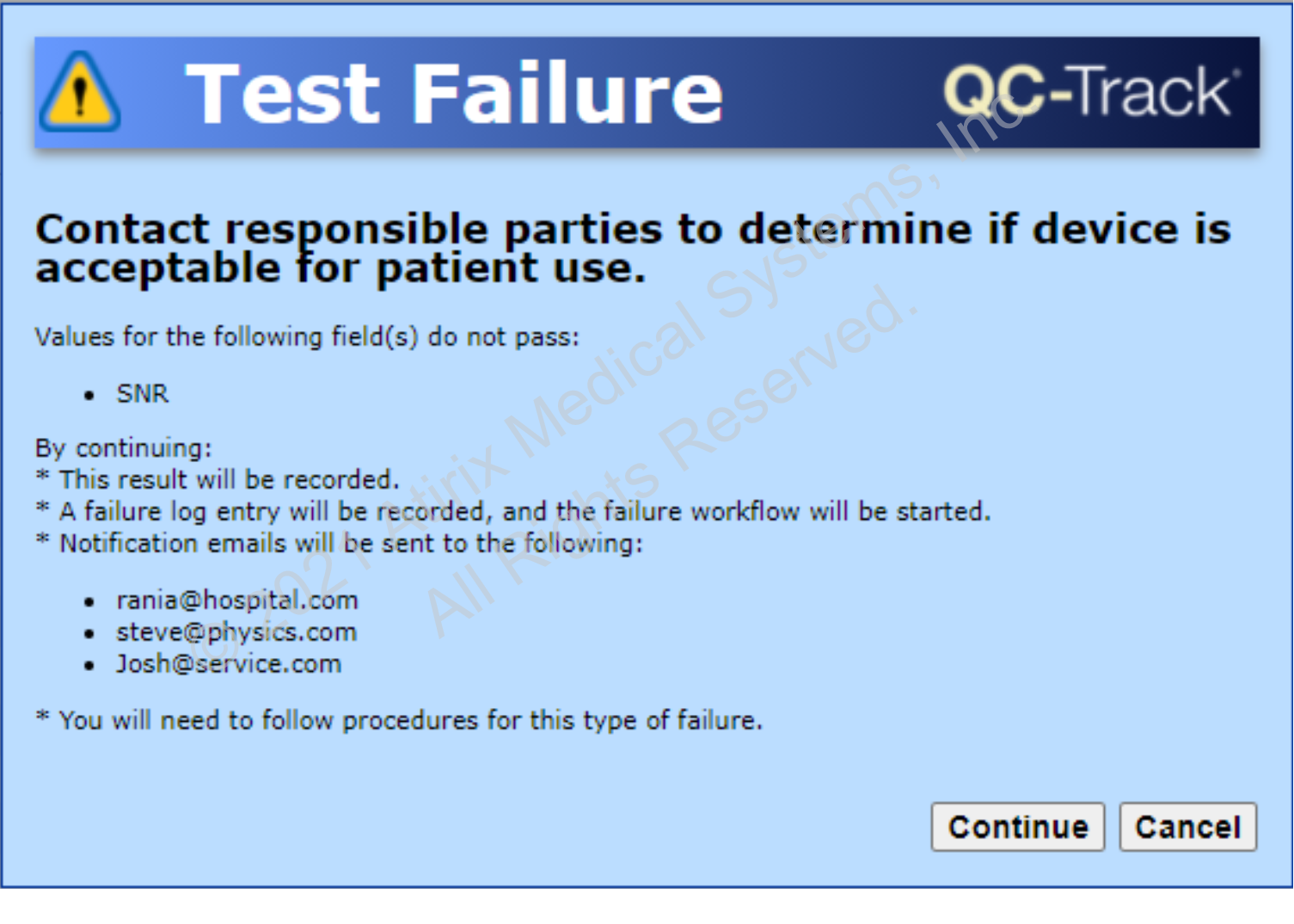 With the QC-Track worksheet, the technologist is given on-the-spot notification of failures.