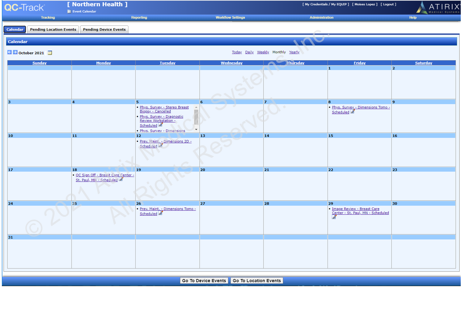 Set up device-specific or location-wide events – whether for preventive maintenance, service, QC sign off, image review,
